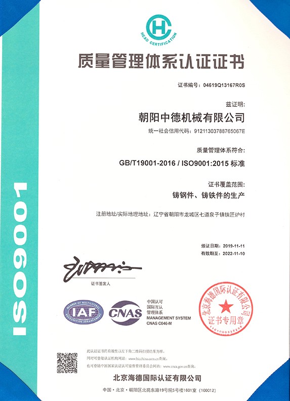 朝陽中德機械有限公司座落于有著“東方佛都”之稱的三燕古都,歷史文化名城——朝陽,具體位置朝陽市龍城區(qū)七道泉子鎮(zhèn)鐵匠爐村。公司創(chuàng)建于2006年5月是一家以鑄鋼件、鑄鐵件,集按用途設計、開發(fā)、生產、銷售于一體的,為機械設備配套的生產型公司。公司注冊資金1000萬,固定資產投資1480萬元,主要生產設備GGW-5T,GGW-10T,GGW-10T中頻感應爐;GDY-13C高溫電阻窯、GDY-9.5C電阻窯,M4000型直讀光譜儀,DP-3985型硬度測試儀,倒置式金相顯微鏡、拉伸試驗機、超生波探傷儀,檢測手段完備。